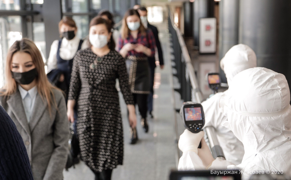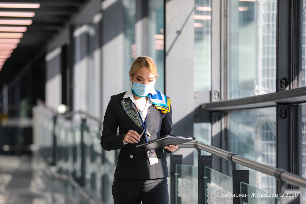 "Пограничники поднимаются на борт, стучат в дверь, им выносят все документы по сопровождению данного самолета. Дальше на борт заходят санитарные врачи, проводят анкетирование и термометрию", - рассказал директор департамента контроля качества и безопасности товаров и услуг на транспорте Министерства здравоохранения Ермек Токбергенов.