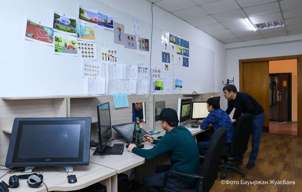 В студии анимации производят мультфильмы и мультсериалы, а также анимационные фильмы. Здесь трудится большая художественная команда: художник-мультипликаторы, аниматоры, IT-специалисты. Команде уже есть чем гордиться. Они выпустили такие мультипликационные фильмы, как "Культегин", "Музбалак" и "Қазақ елі".