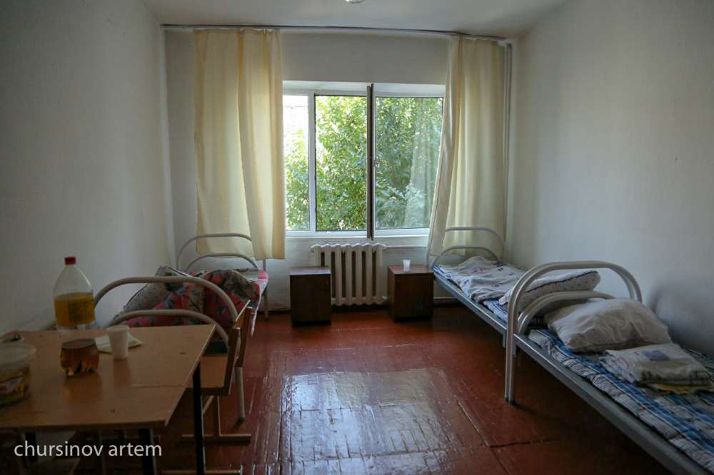 Это общежитие Жамбылского политехнического колледжа. С 9 часов вечера и до двух часов ночи здесь принимали жителей населенных пунктов Байзакского района. Семей из аулов Байзак и Сарыкемер привезли сюда на двух автобусах.