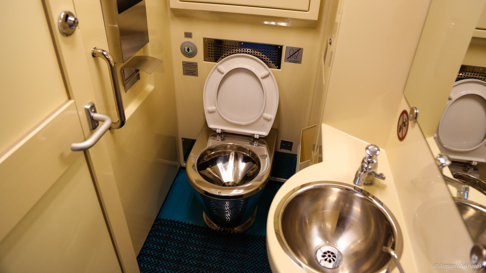 Есть тут и биотуалеты, которые расположены в одной части вагона. Они работают автономно и экипируются примерно 1000 литрами воды, хранящихся в резервуарах с наличием лампы для обеззараживания.