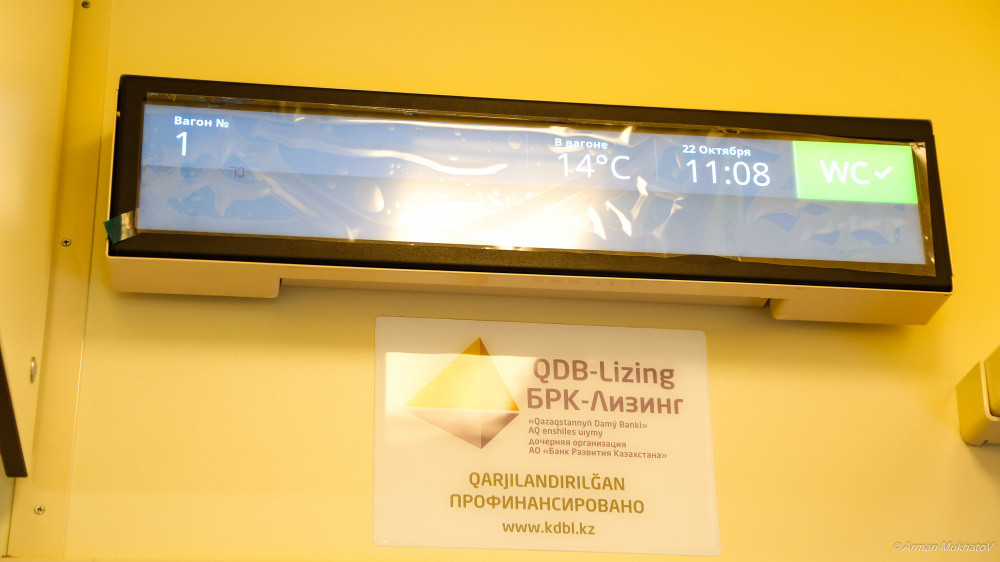 Кроме того, как рассказал Тлеуленов, вагоны оснащены системой видеонаблюдения, предусматривающей шесть видеокамер, расположенных в служебном купе проводника, коридорах и тамбурах. Они работают в цветном режиме и обеспечивают просмотр в реальном времени на экране монитора штабного вагона.