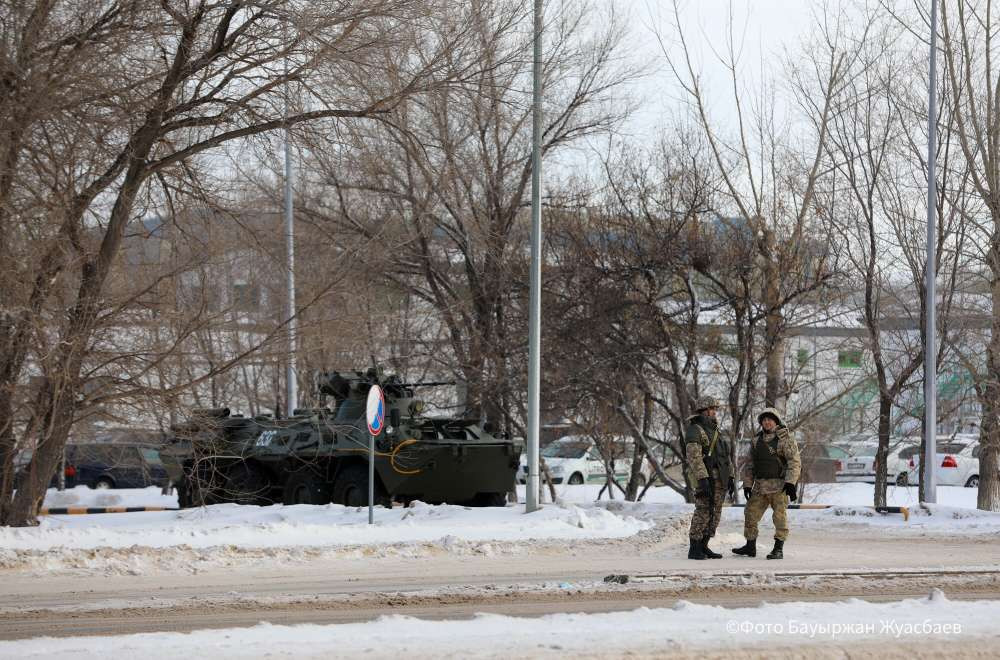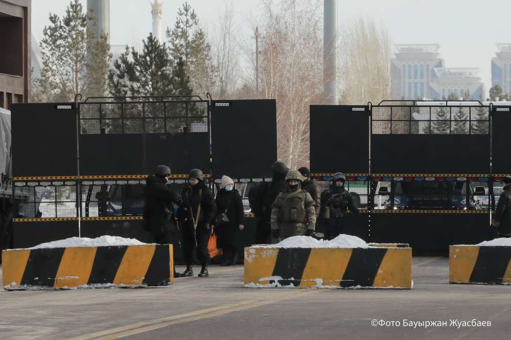 Возле резиденции Президента Акорда установлены несколько линий обороны – заграждения из автобусов, солдаты со щитами и бронетехника. Также перекрыты арки Дома министерств и пешеходные мосты через улицу Мангилик ел.