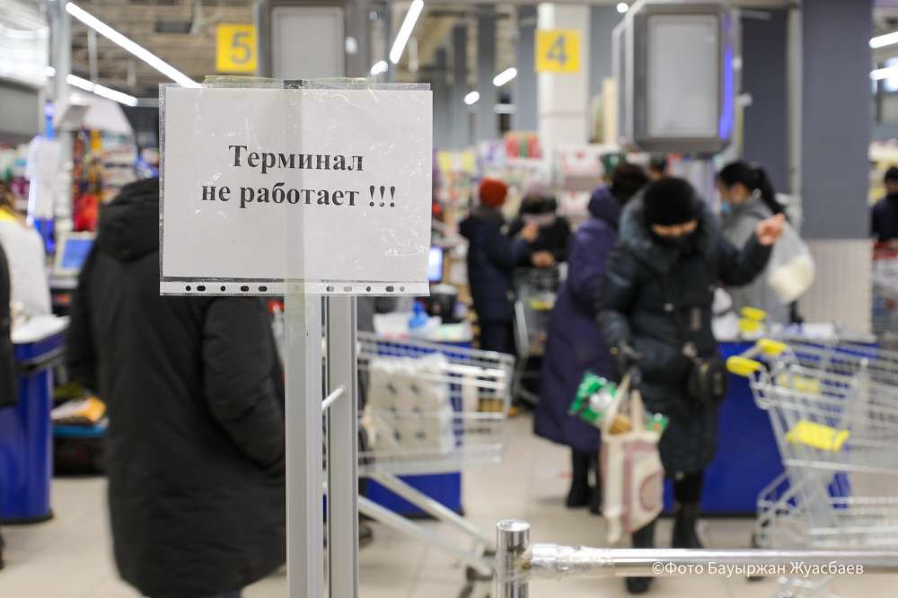 Астанчане активно закупаются продуктами в супермаркетах и крытых рынках. Правда, рассчитываться там можно было только наличными деньгами.