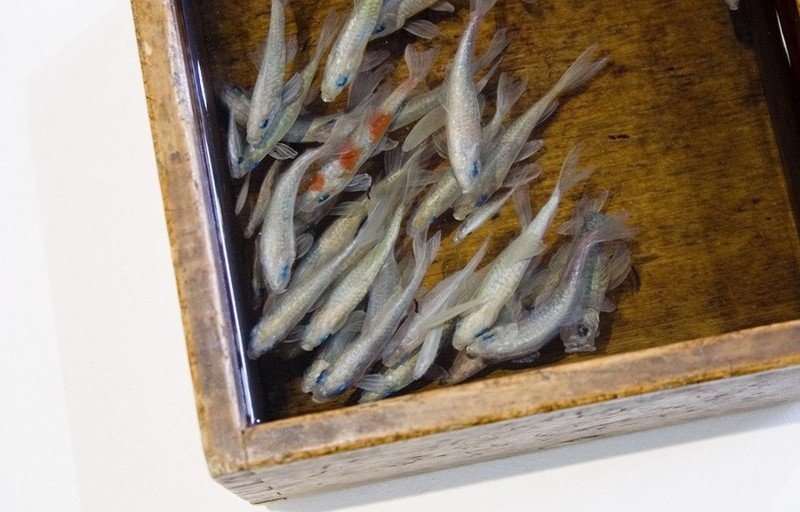 Речная и морская живность, воссоздана в разных емкостях с использованием прозрачных смол, смешанных с акриловыми красками. В результате манипуляций со слоями и красками рисунки японца приобретают необычную живость.