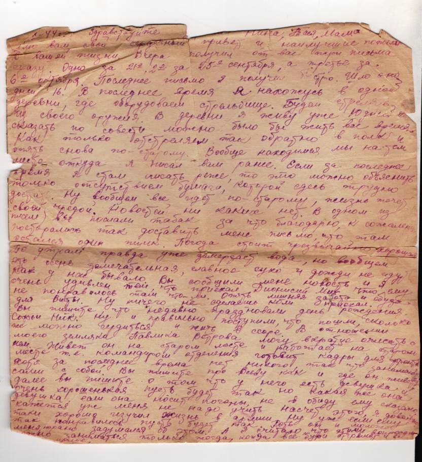 Своей маме боец писал тогда: "Мне раньше казалось, что я не смог бы преодолеть подобные трудности, а сейчас они, когда тяжело, легко переживаются… Порой плакать приходится по-настоящему…" (17 сентября 1942 года).