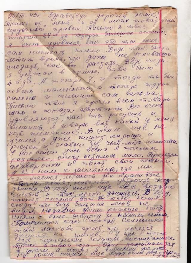 Вот ещё строки, которые захотелось записать в блокнот: "Надеюсь, что наступающий год будет последним в нашей разлуке…" (12 декабря 1944 года).