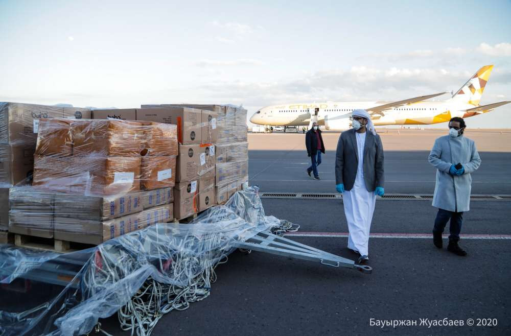 6 апреля по решению властей ОАЭ направил самолет в Нур-Султан с медицинскими средствами полной и частичной защиты, одноразовые перчатки, медицинские маски, бахилы, антисептики общим весом около 13 тонн.