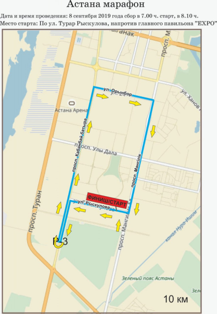 Во время "Astana Marathon-2019" улица Рыскулова и проспект Кабанбай батыра в Нур-Султане будут закрыты полностью, сообщает BaigeNews.kz со ссылкой на прес-службу акимата города.