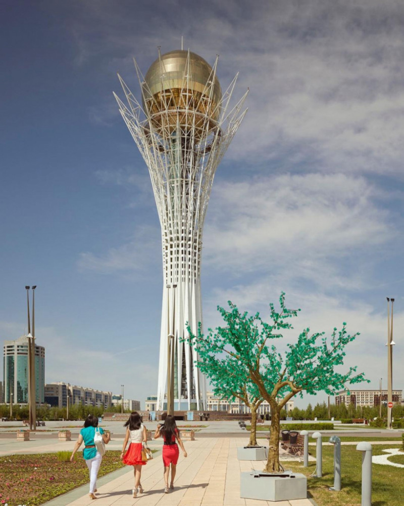 "Сияющий, просторный город Казахстана Астана является второй самой холодной столицей в мире, но, тем не менее, это город с растущей культурой ночной жизни и зданиями с "футуристического вида", - подписал Куваджима одну из своих работ.
