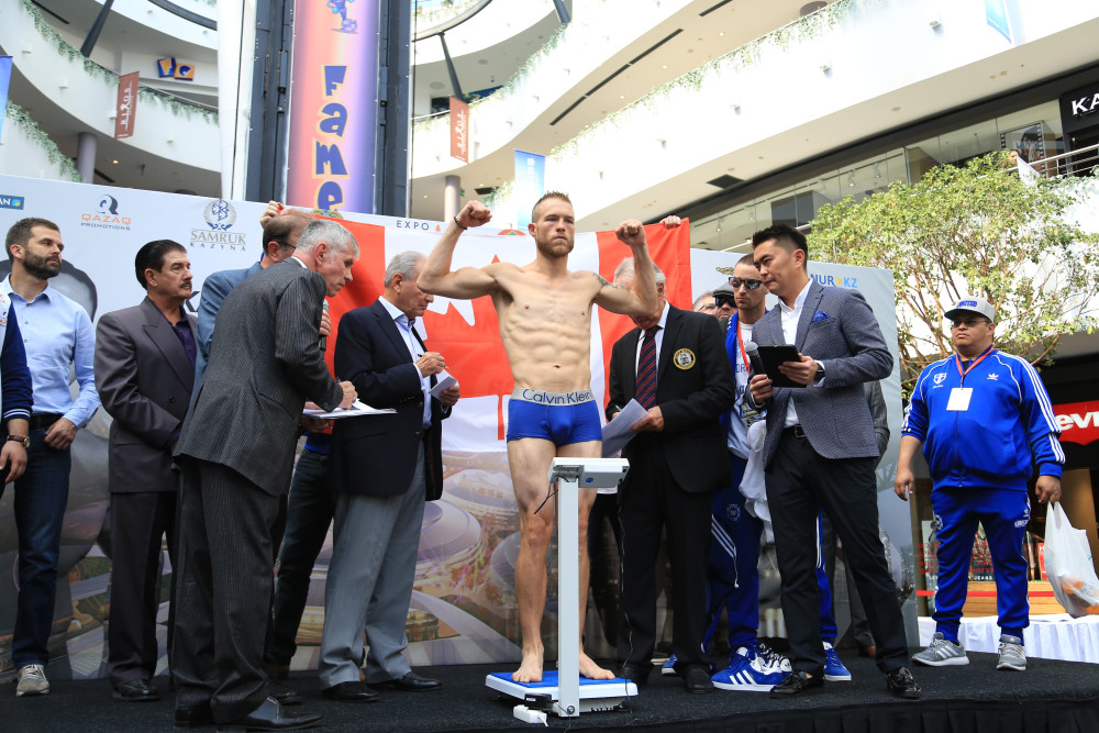 Остальные бойцы процедуру взвешивания и дула взглядов провели спокойно и с подобающим уважением, кроме экс-бойца UFC бразильца Эдуардо дос Рейеса, который попытался вывести из равновесия нью-йоркского полицейского Димаша Ниязова и выяснить отношения прямо на сцене, однако выдержка полицейского не поддаваться провокациям позволило Димашу достойно выйти из ситуации.