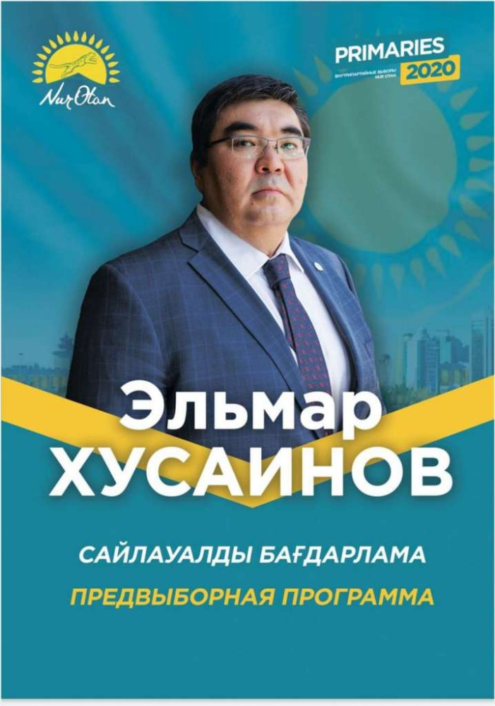 Представитель Атырауской области Эльмар Хусаинов хочет стать депутатом, чтобы бороться с коррупцией. А еще кардинально улучшить сферу образования: решить вопрос дефицита учителей, открыть английские классы и доступ к интернету для школьников, у которых этого нет. Кроме того, Хусаинов обещает поддержать многодетных матерей, пенсионеров, инвалидов и многое другое.