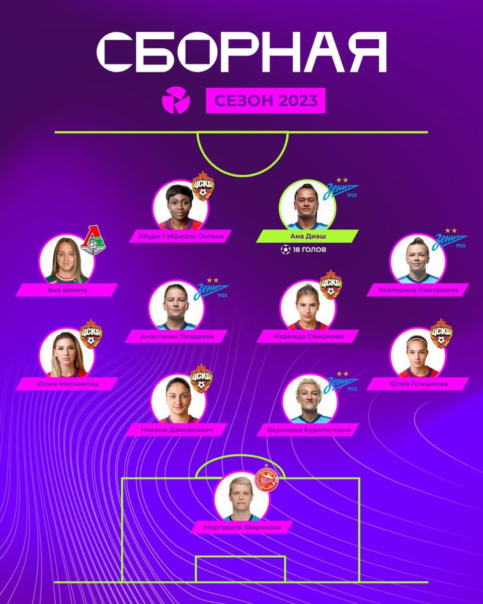30-летняя Мясникова стала одной из 11 футболисток женской Суперлиги-2023, которые вошли в состав символической команды сезона. Кроме казахстанки в символическую сборную вошли еще четыре игрока московского клуба.