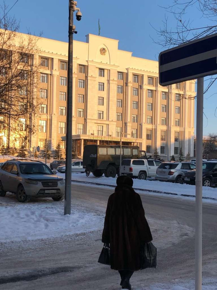 Однако административные и стратегические объекты по-прежнему находятся под усиленной охраной. На фото здание областного акимата, вокруг которого выставлена круглосуточное наблюдение. Сотрудники также проводят обход ближайших дворов.