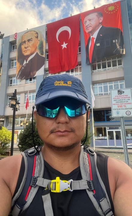 В городе Трабзон посетил памятник Абаю. Измерял пройденное расстояние с помощью часов Garmin и публиковал свой ежедневный маршрут в соцсетях.