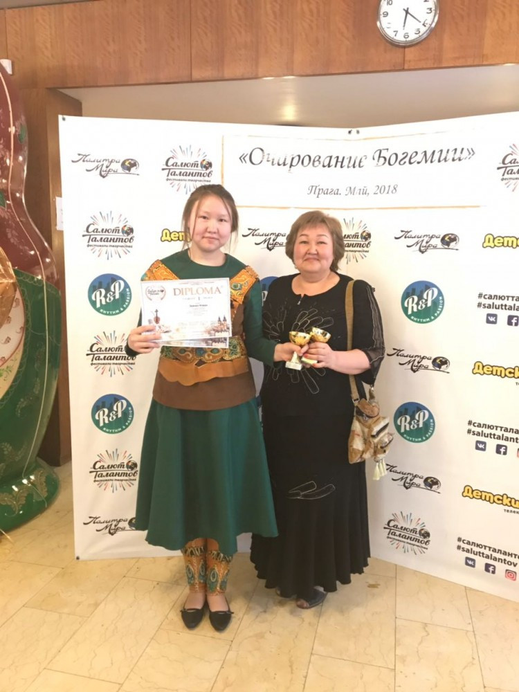 "Наша домбристка Зейнел Улжан стала победительницей в Праге. Она заняла I место в конкурсе и получила грамоту за лучший национальный костюм. Вместе с другими обладателями первых мест в октябре 2018 года она поедет в Санкт-Петербург для участия в VIII суперфинале международного проекта "Салют талантов", - рассказывает директор школы искусств №1 Анастасия Бермичева.
