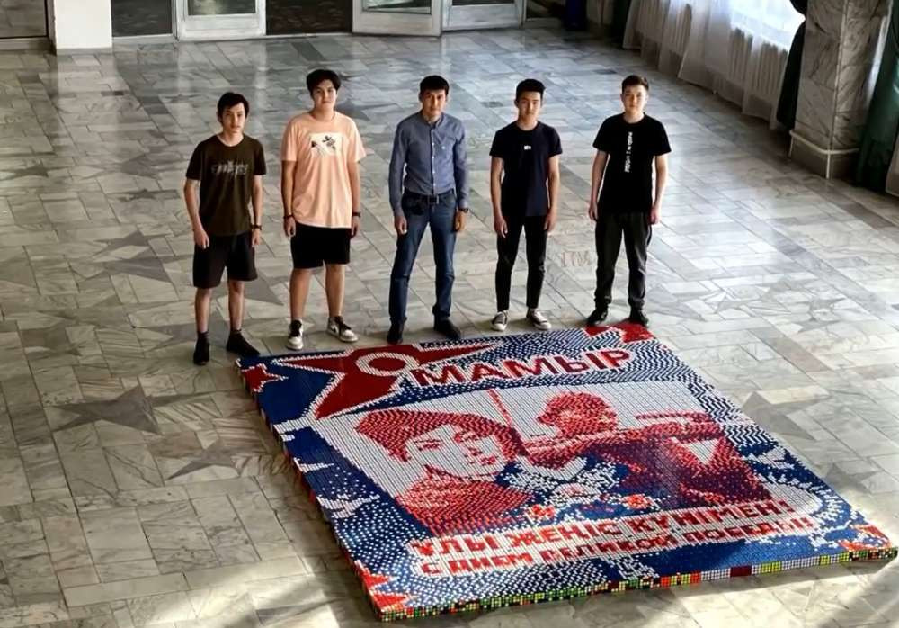 Команда куберов Семейского клуба Kazakhstan Speedcubing Federation (KSF) ко Дню Победы собрала картину из кубиков Рубика, передает корреспондент