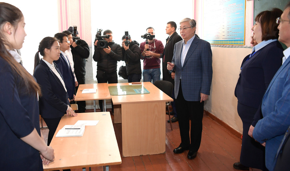 Касым-Жомарт Токаев также посетил среднюю школу №1 им. Р. Кошкарбаева. В беседе с педагогами и учениками Глава государства подчеркнул, что в Казахстане созданы все необходимые условия для получения качественного образования.