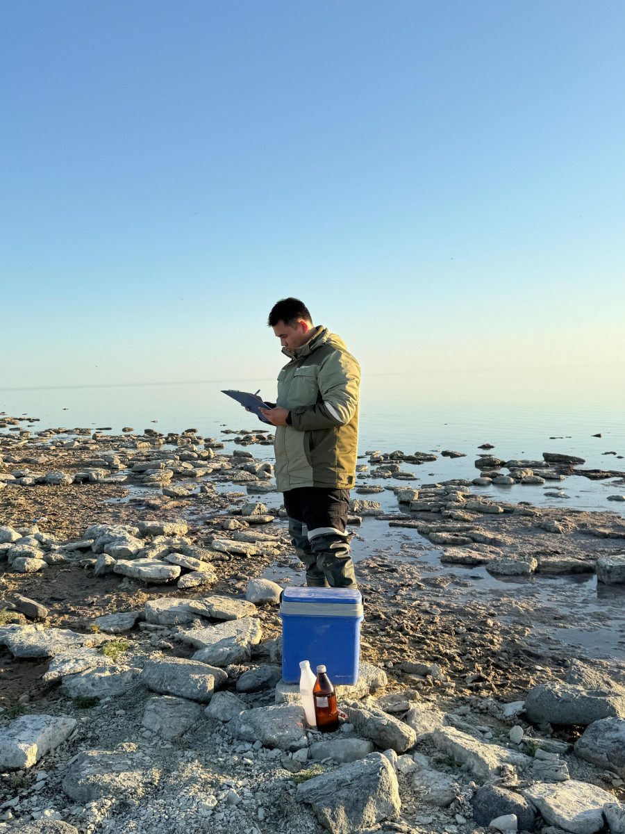 На фото: воду Каспия проверяют на содержание тяжелых металлов