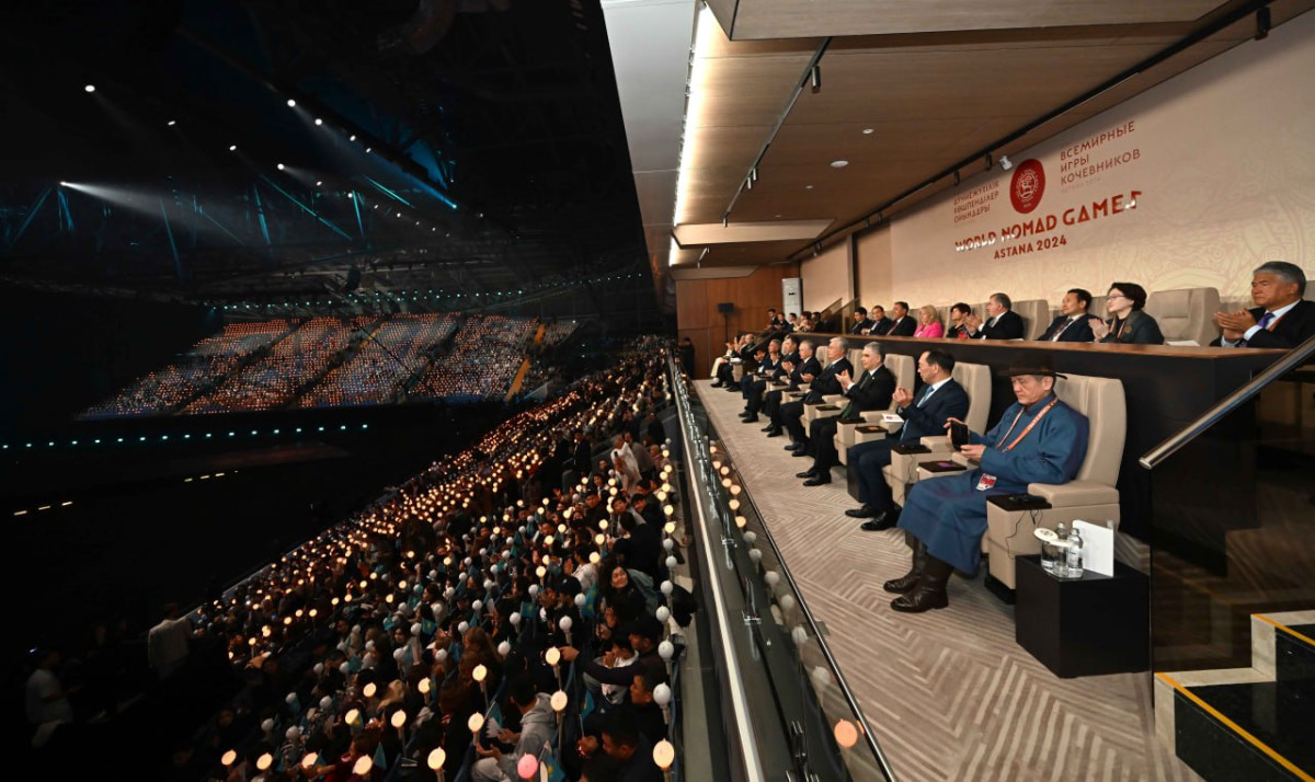Ранее глава государства официально объявил Игры кочевников открытыми. В зрелищное шоу церемонии также вошёл парад стран-участников игр. Самым первым флагом, который вынесли на сегодняшней церемонии открытия был флаг Казахстана. Его презентовали дети разных этносов.