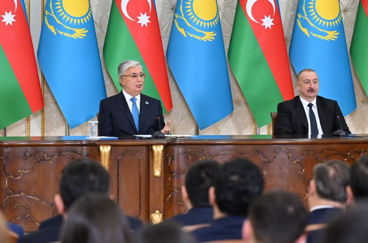 Касым-Жомарт Токаев и Ильхам Алиев провели брифинг для представителей СМИ в Азербайджане, передаёт BaigeNews.kz со ссылкой на Акорду.
