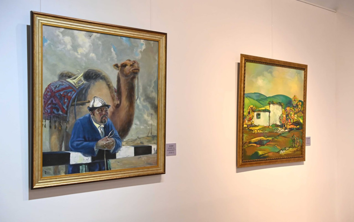 Искусствовед Ольга Батурина ознакомила президента с экспозицией "Живопись степи: символы, краски, образы", объединяющей работы талантливых казахстанских живописцев.