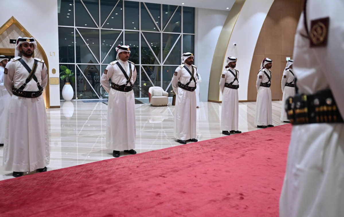 В международном аэропорту "Хамад" в Дохе президента встретил Эмир Катара шейх Тамим бен Хамад Аль Тани. У трапа самолета была выстроена рота Почётного караула.