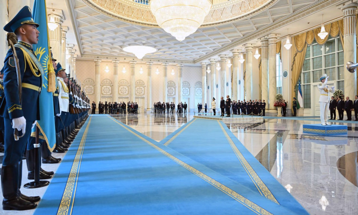 Касым-Жомарт Токаев и Шавкат Мирзиёев представили друг другу членов делегаций. Начальник роты Почётного караула отдал приветственный рапорт лидерам двух стран, прозвучали государственные гимны Казахстана и Узбекистана.