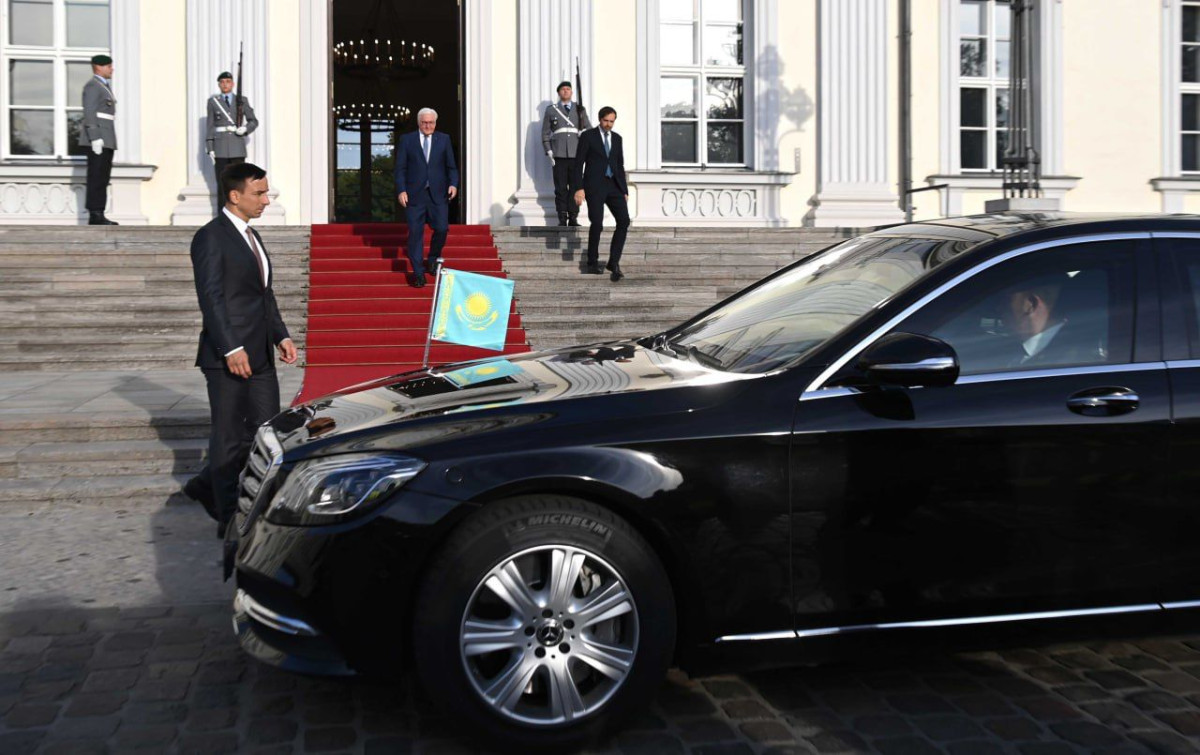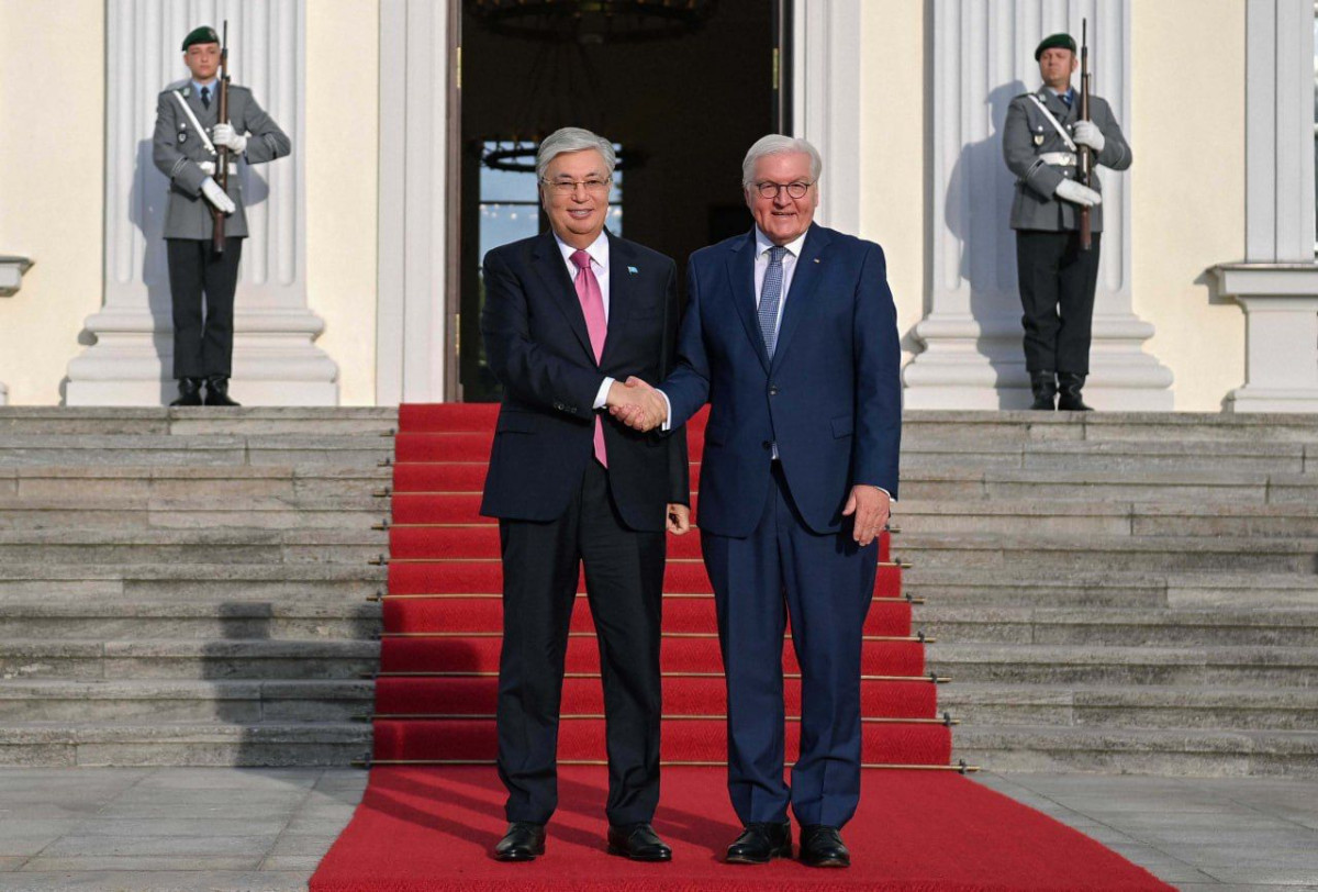 Глава государства Касым-Жомарт Токаев прибыл в резиденцию Bellevue. Его встретил президент Германии Франк-Вальтер Штайнмайер.