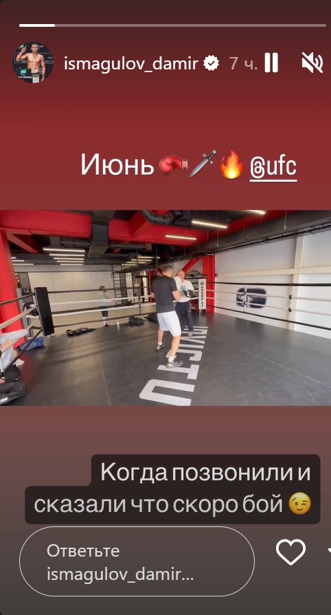 Дамир поделился видео тренировки в сторис с подписью "Июнь. Когда позвонили и сказали, что скоро бой".