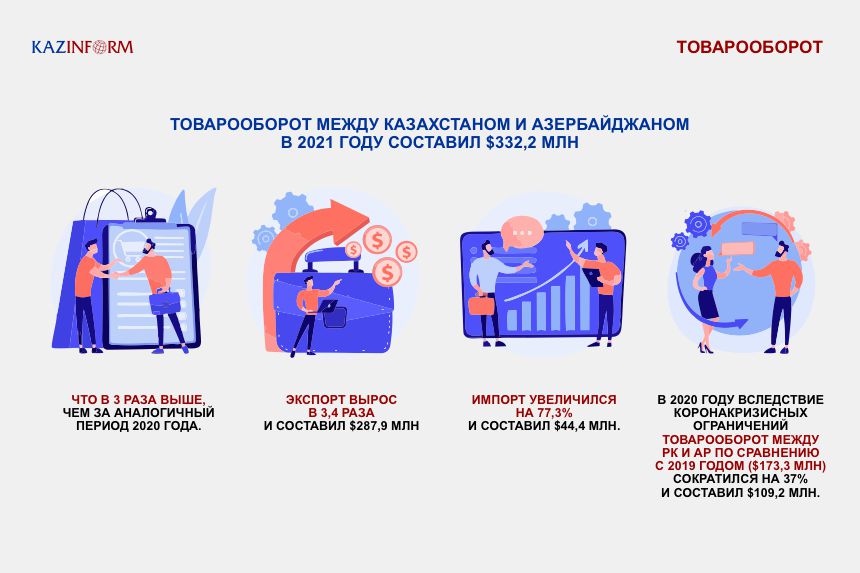 Для налаживания торгово-экономических связей в сентябре 2020 года учрежден "Торговый дом Казахстана" в Азербайджане. В мае 2021 года был открыт "Торговый дом Азербайджана" в Нур-Султане. Как заявляют организаторы, эта структура выступает в качестве диалоговой площадки для деловых кругов и способствует реализации продукции на территории двух стран.