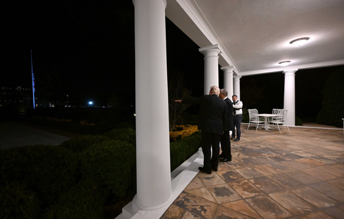 После официальной части встречи Дональд Трамп и Касым-Жомарт Токаев продолжили беседу в неформальной обстановке и с крыльца Белого дома осмотрели строительство нового бального зала.