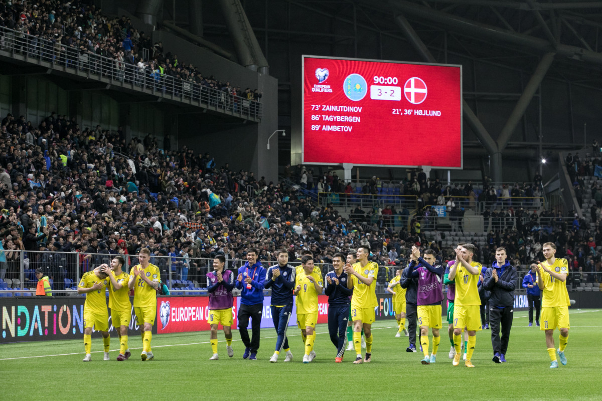 Сборная Казахстана сенсационно обыграла команду Дании в квалификации Евро-2024. Матч в группе H состоялся на "Астана Арене" и завершился со счётом 3:2. По ходу игры гости вели с преимуществом в два мяча.