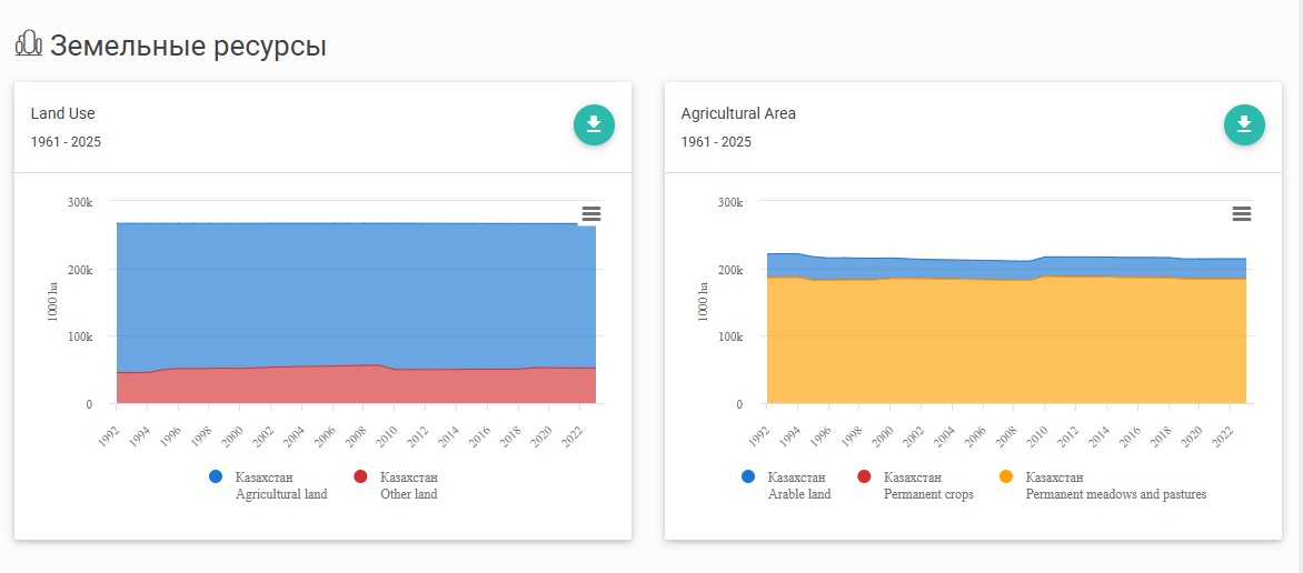 Таким образом, обладая значительными земельными ресурсами, Казахстан постепенно трансформирует свою аграрную модель, делая акцент на устойчивость, рентабельность и диверсификацию производства.