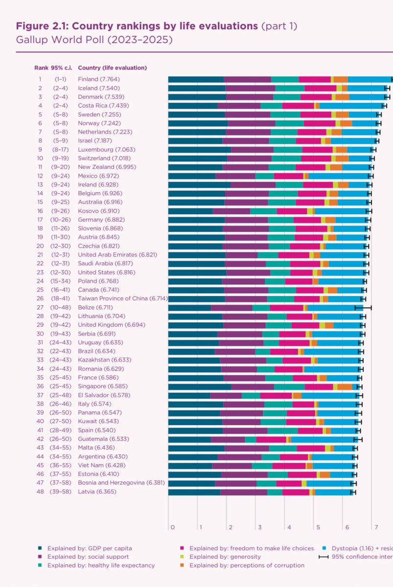 Доклад ежегодно публикуется при участии ООН, Оксфордского университета и аналитической компании Gallup и считается одним из главных глобальных исследований качества жизни. В 2026 году в рейтинг вошли 147 стран, а оценка строилась на основе того, как сами жители оценивают свою жизнь.