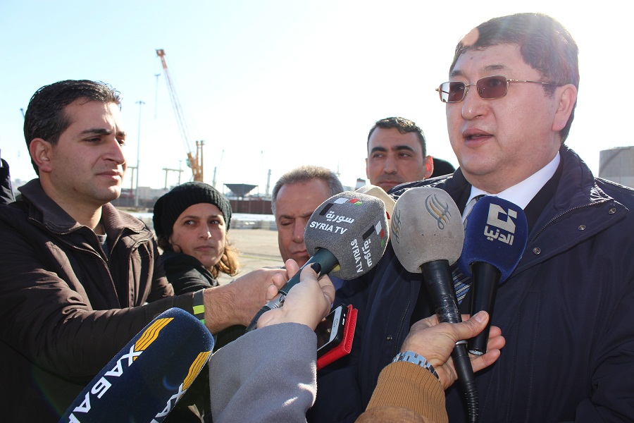 Гуманитарный груз доставлен в порт Тартус при содействии Российской Федерации. Посол Казахстана в Иордании Азамат Бердыбай передал гуманитарную помощь сирийской стороне в лице председателя Совета провинции Тартус Ясера Дибба.