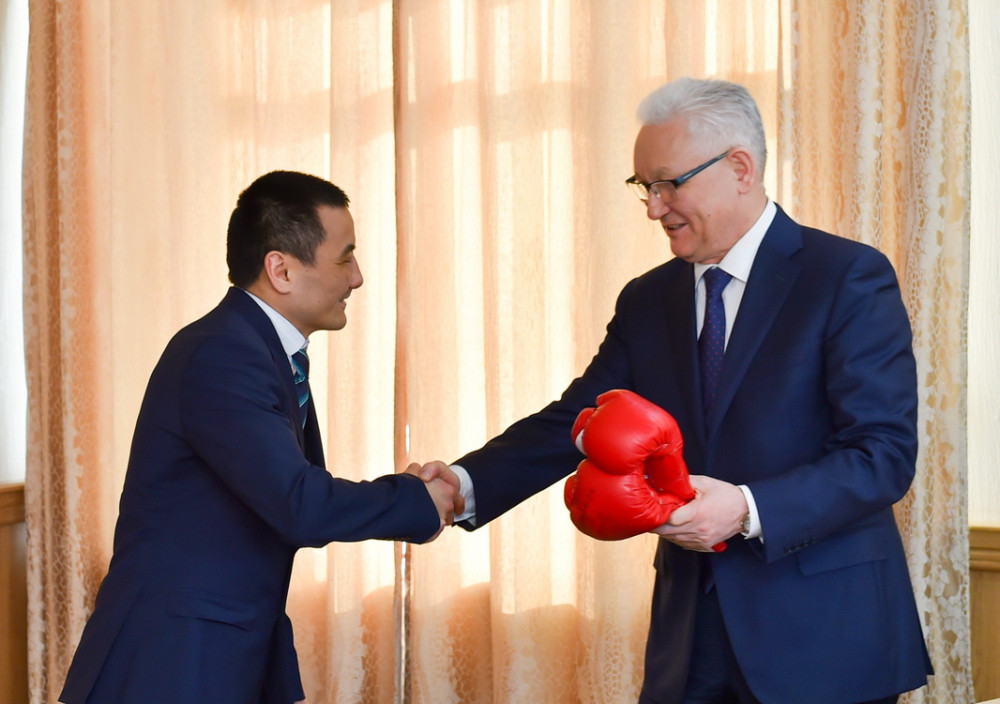 В знак благодарности чемпион мира подарил акиму свои перчатки, которыми боксировал 10 февраля в американском городе Толедо против Роуши Уоррена.