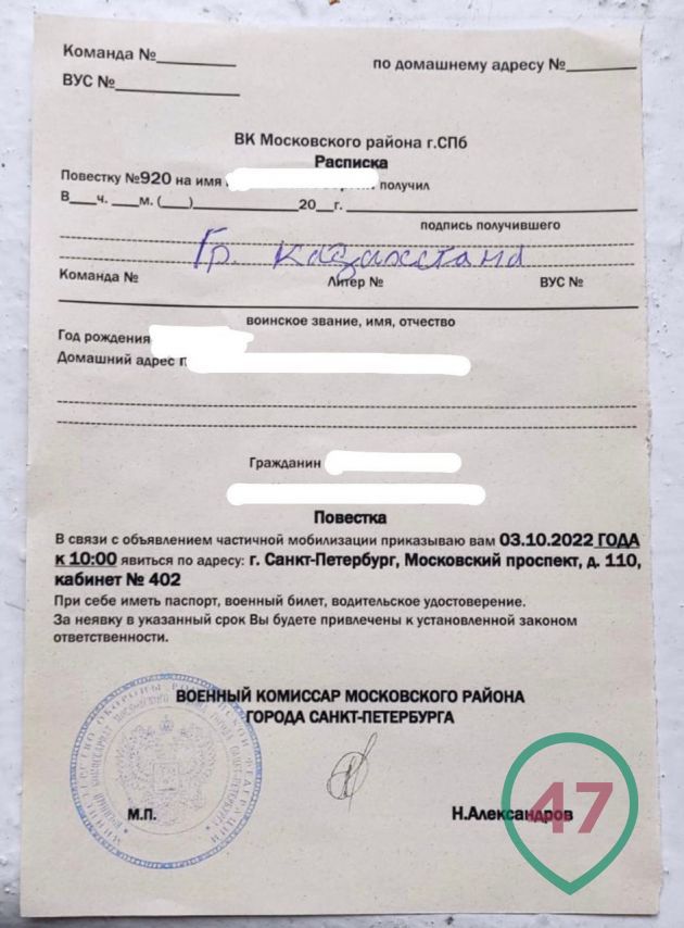 31-летний гражданин Казахстана получил повестку о мобилизации в Санкт-Петербурге. Инцидент прокомментировали в МИД РК, передаёт BaigeNews.kz.