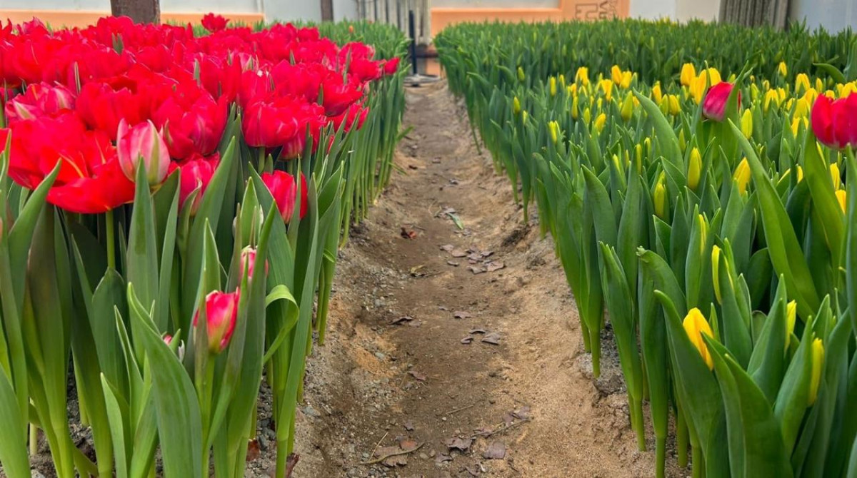 Бауыржану помогает супруга Рания. Если дело пойдёт, то в следующем году он намерен увеличить площадь посадки тюльпанов.