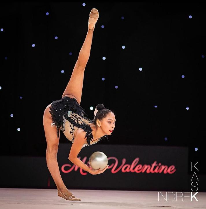Представительница национальной сборной Казахстана стала серебряным призёром в выступлении с мячом (32.700 балла), бронзовым в упражнении на кольце (32.55 балла).