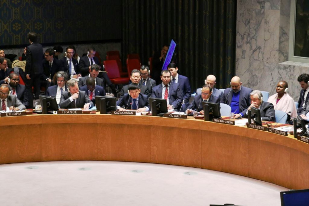 Стоит отметить, что с 1 января текущего года Казахстан приступил к председательству в Совете Безопасности ООН. В рамках данного статусаКазахстан осуществляет общее руководство деятельностью Совета, обеспечивает бесперебойную ежедневную работу Совбеза при содействии секретариата ООН. Председатель выступает с заявлениями от имени Совета по согласованию с членами СБ, а также перед прессой по итогам обсуждений в ходе неформальных консультаций и всякий раз, когда Совбез достигает соглашения по тексту того или иного документа.