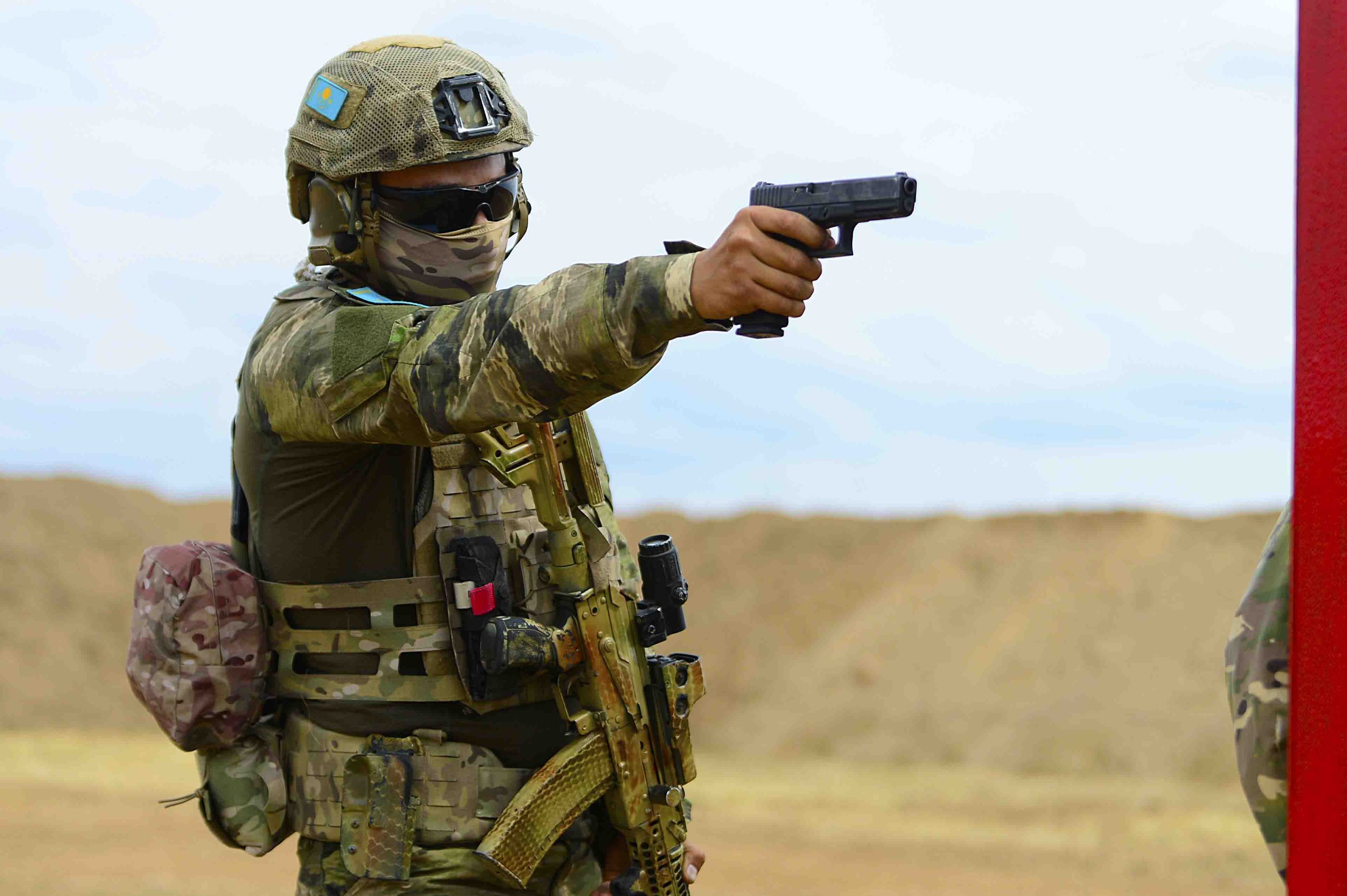 В учебном центре "Спасск" Карагандинской области армейские стрелки уже выполнили первое квалификационное упражнение конкурса "Тактический стрелок". При этом учитывалось наличие устойчивых навыков меткой стрельбы с различных позиций по нескольким мишеням, уверенного и безопасного обращения с оружием.