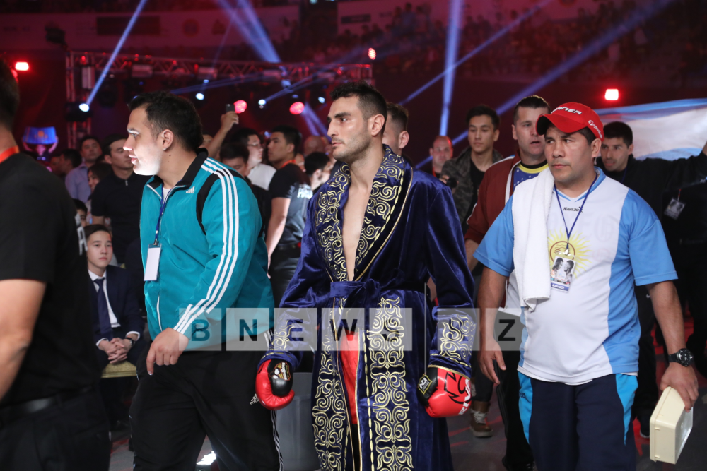 Далее казахстанский боксер среднего веса Айдос Ербосынулы победил аргентинца Джонатана Джеронимо Барбадильо. Поединок стал третьим в андекарте вечера бокса в Астане.