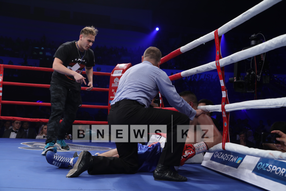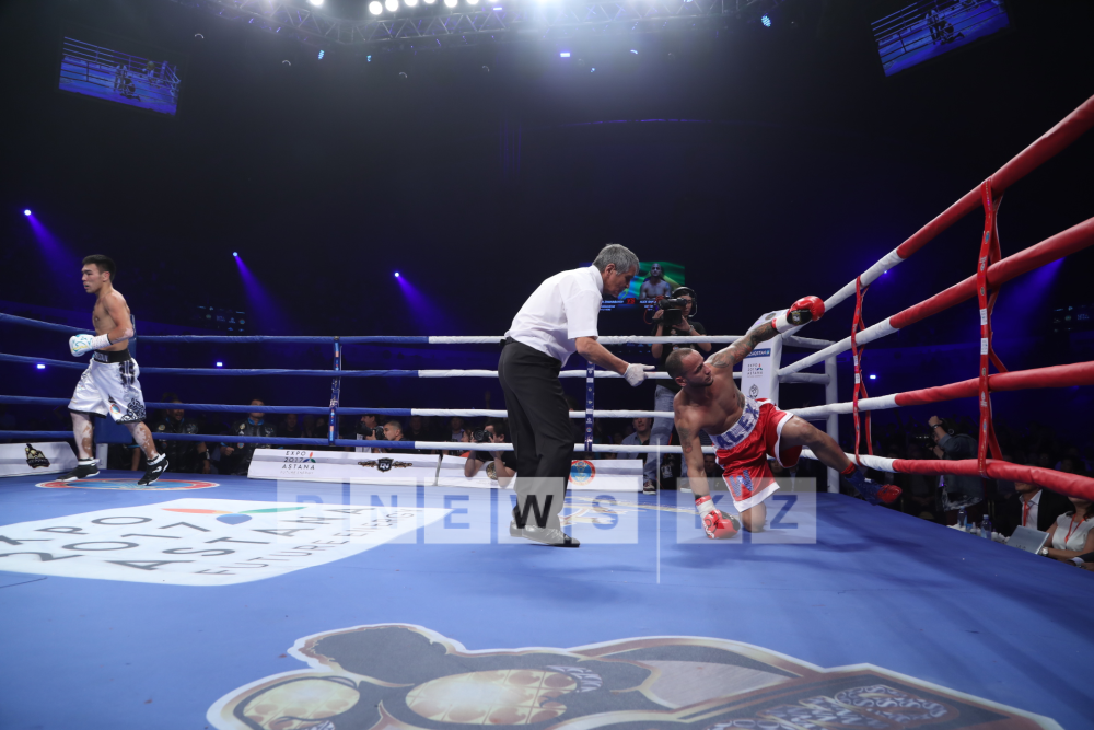 Серию побед открыл казахстанский средневес Мейирим Нурсултанов, который одержал уверенную победу над бразильцем Исмаэлем Буэно. Уже в первом раунде Нурсултанов отправил Буэно в нокаут. Поединок завершился на отметке 50 секунд, когда казахстанец выбил бразильца с ринга, сообщает Vesti.kz.