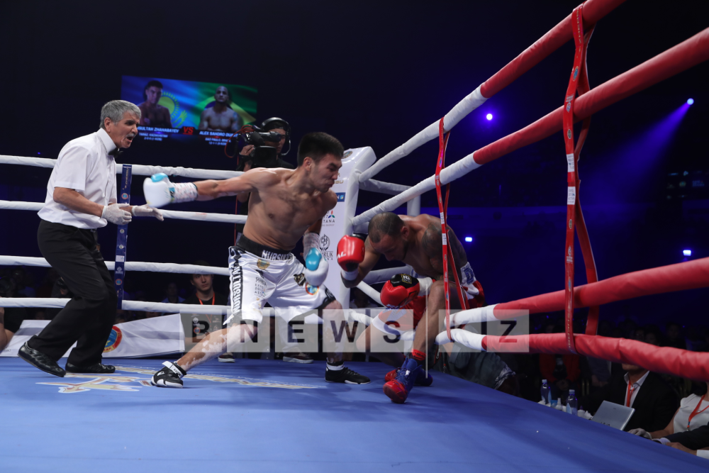 Казахстанец Нурсултан Жанабаев одержал уверенную победу над бразильцем Алексом Сандром Дуартэ. Уже в первые секунды Жанабаев отправил соперника в нокдаун. В концовке раунда бразилец вновь оказался на канвасе, после чего судья остановил поединок.