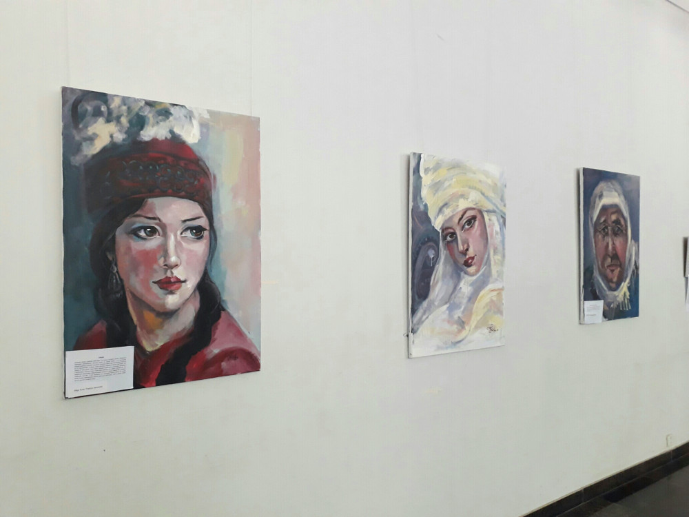 Серия портретов другой художницы из Казахстана Ольги Эрен, посвящена казахским женским головным уборам, которые, по мнению автора, по праву могут считаться важной составляющей в богатейшей мозаике тюркского мира.