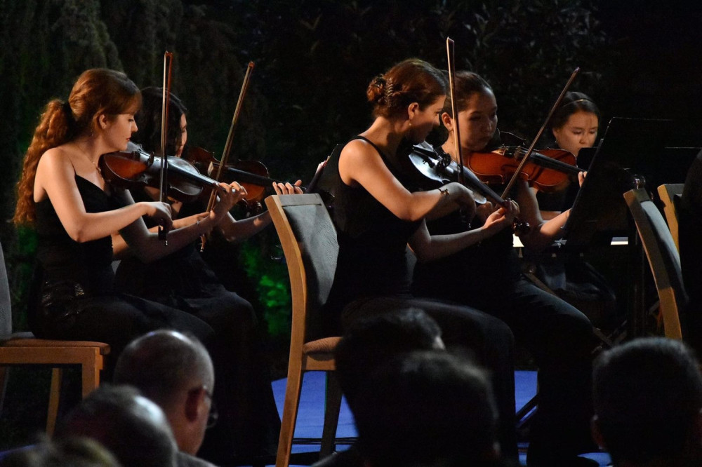 Помимо казахстанцев, в балканском турне оркестра участвуют молодые музыканты из Азербайджана, Кыргызстана, Туркменистана, Турции, Башкортостана (РФ) и Татарстана (РФ).