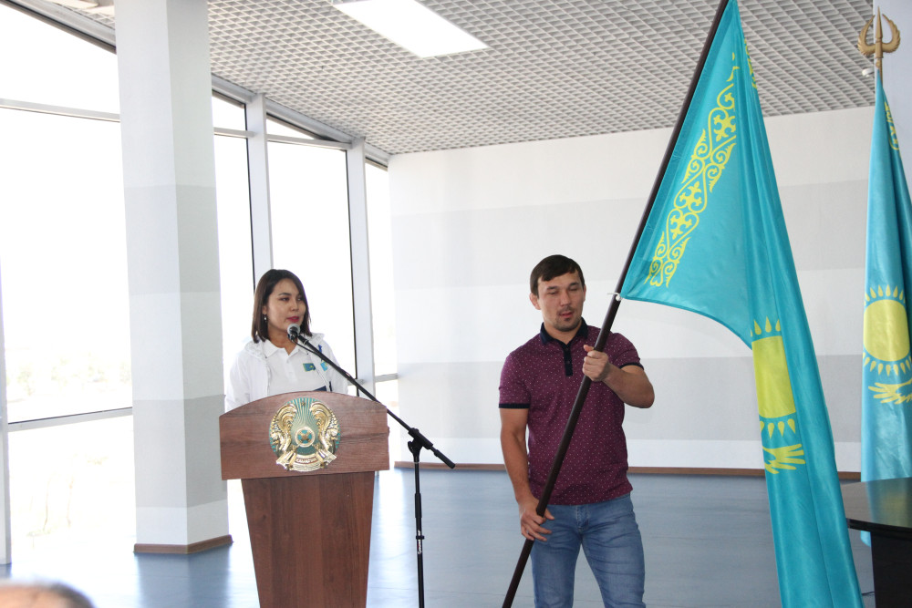 Бронзовый призёр Олимпийских игр Акжурек Танатаров торжественно вручил флаг Республики Казахстан трёхкратному чемпиону Азии по аударыспак Сырыму Избасарову. Последний, в свою очередь, от имени казахстанских спортсменов произнёс клятвенную речь.
