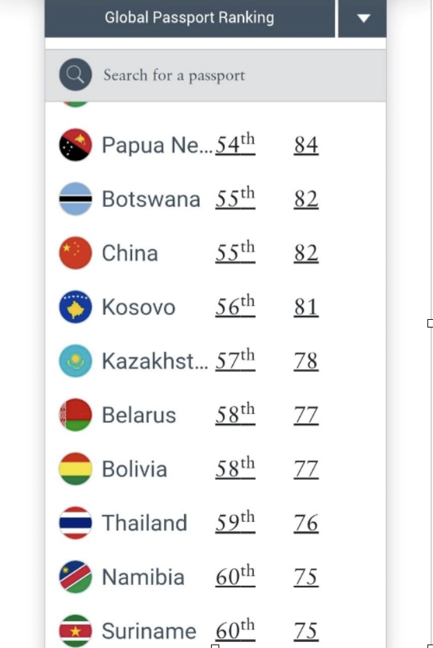 Казахстан уверенно опережает соседей по региону. Кыргызстан и Узбекистан делят 73-ю строчку с доступом к 59 странам, Таджикистан занимает 79-е место (53 страны), а Туркменистан 87-е место (45 стран). Таким образом, казахстанский паспорт остаётся самым сильным в Центральной Азии, открывая своим гражданам почти на треть больше направлений, чем у ближайших соседей.