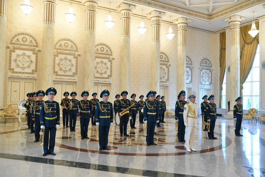 Руководит Президентским духовым оркестром Казахстана дирижёр, выпускник Казахского национального университета искусств, магистр искусствоведческих наук Курмет Бейсембаев.