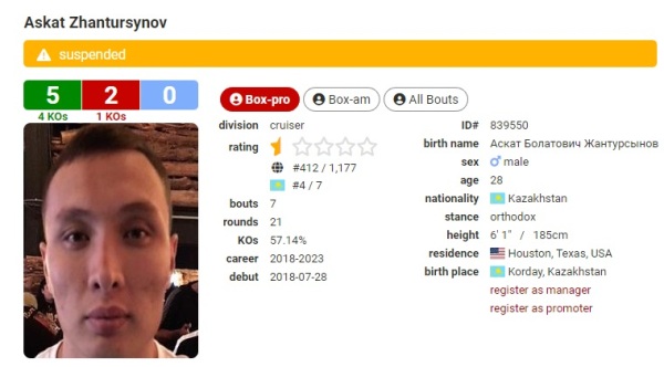 На самом же деле у Аската Жантурсынова в профи по-прежнему лишь одно поражение при шести победах.